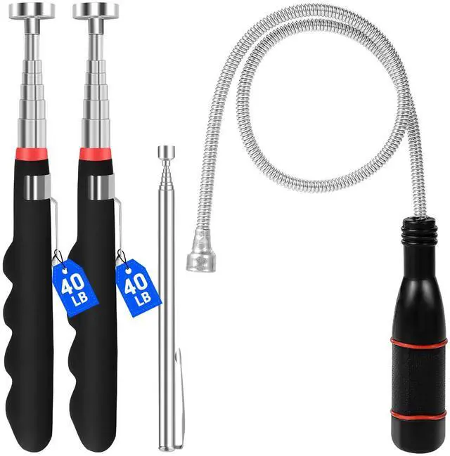 4Pcs Telescoping Magnetic Pickup Tool with 40lb Pull Force, 30in Telescopic Strong Magnet Sticks, Non-Slip Long Extendable Magnet Pickup Tools, Magnetic Nail Picker Upper for Technicians Mechanics