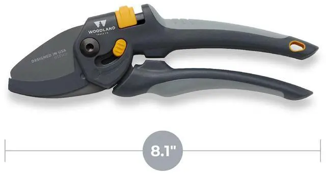 The Woodland Tools Anvil Pruner provides the ultimate pruning experience. The Anvil Pruner is designed with high carbon steel blades and non-stick coating ideal for pruning smaller, dormant, and dry branches and stems. Lever technology increases cutting power and force on deadwood. Non-stick coating ensures long-term rust resistance. Ergonomic, adjustable hand grip provides a personalized cutting experienced.