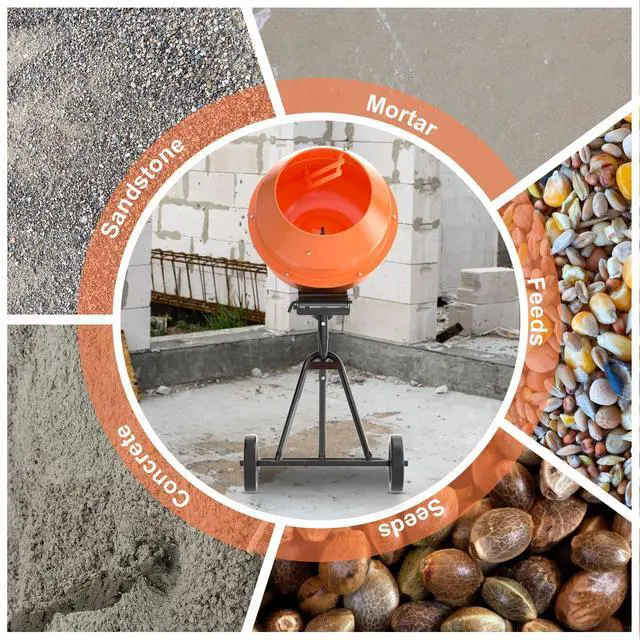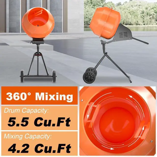 This 550W electric cement mixer delivers industrial-level performance for both contractors and DIY enthusiasts. With a 2800 RPM motor, it effortlessly blends concrete, mortar, or stucco in minutes, while the 4.2 Cu Ft effective mixing capacity ( 5.5 Cu Ft drum) maximizes productivity.