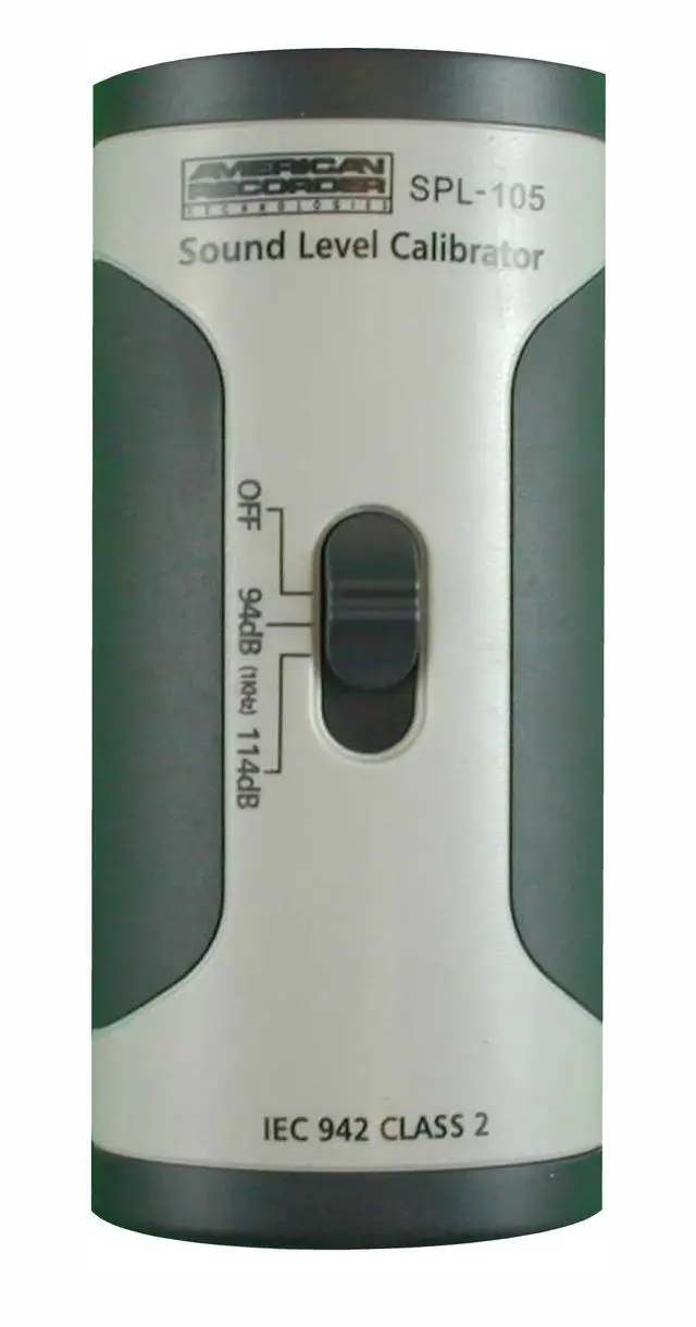 The SPL-105 Sound Level Meter Calibrator is used to verify the SPL Meter is functioning properly and ifnecessary, re-calibrate. Two way slide switch allows for calibration at 94dB or 114dB. For use with American Recorder SPL meters or any SPL meter with 1/2" or smaller diameter microphones. Operates with 9v DC battery. Complies with IEC 942 Class 2. Specifications: