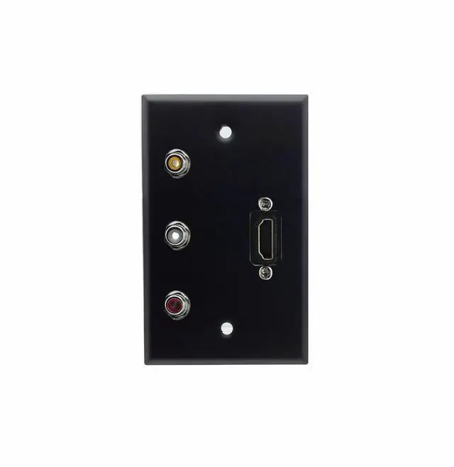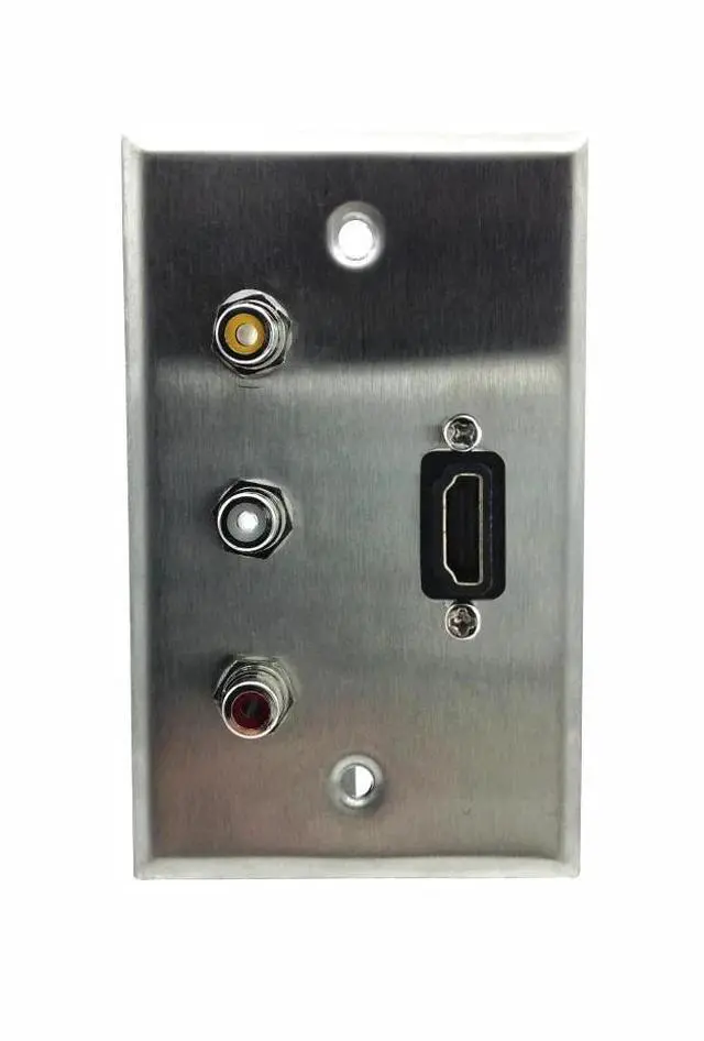 Single Gang HDMI + 3 RCA Stainless Steel Wall Plate - pass through style, female to female