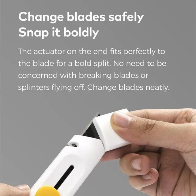 CHANGE BLADES SAFELY SNAP IT BOLDLY: The actuator on the end fits perfectly to the blade for a bold split. No need to be concerned with breaking blades or splinters flying off. Change blades neatly.