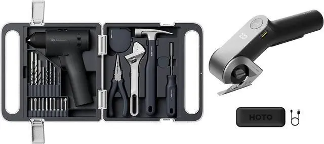 COMPLETE TOOL KIT: 25-piece household tool set with 16V brushless drill, hammer, wrench, pliers, screwdriver, tape measure, and drill bits for all home repair needs