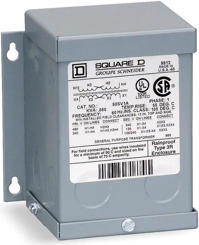Dry Type Power Distribution Transformer, Input Voltage - Transformer 240V AC, 480V AC, Output Voltage - Transformer 120V AC, 240V AC, VA Rating - Transformer 1 kVA, Mounting - Transformer Wall, Outdoor Rated - Transformer Yes, Voltage Function - Transformer Step Down, Winding Material - Transformer Copper, Hz - Electrical 60 Hz, Temp. Rise 115 Degrees C, Enclosure Rating NEMA 3R, IP Rating IP54. This item has been restricted from sale in the following state (s): []
