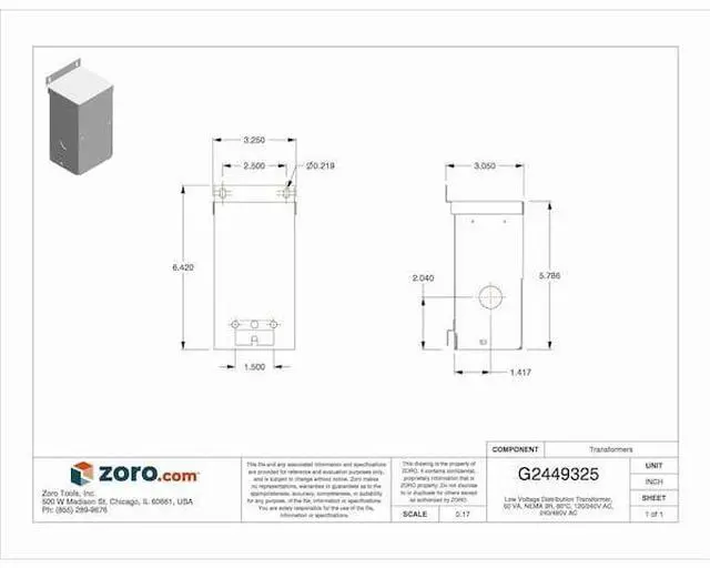 Low Voltage Distribution Transformer - Single Phase, 240X480 - 120/240V, 0.05kVA