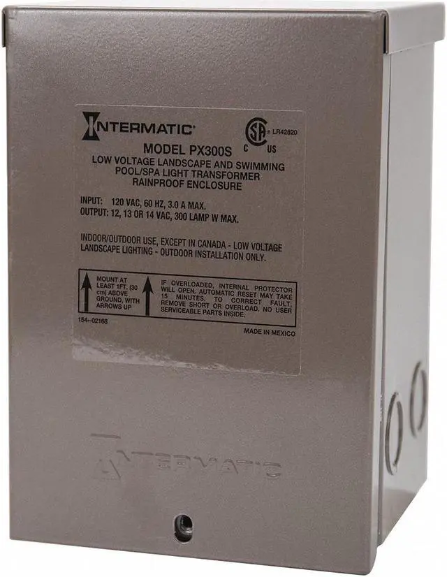 Pool Light Transformer, Input Voltage 120V AC, Output Voltage 12V AC, 13V AC, 14V AC, Max. Wattage 300 W, Enclosure Material Stainless Steel, Color Brown, Height 7.25 in, Width 5.25 in, Depth 4.5 in, Standards cCSAus, NEC Code 680.23. This item has been restricted from sale in the following state (s): []