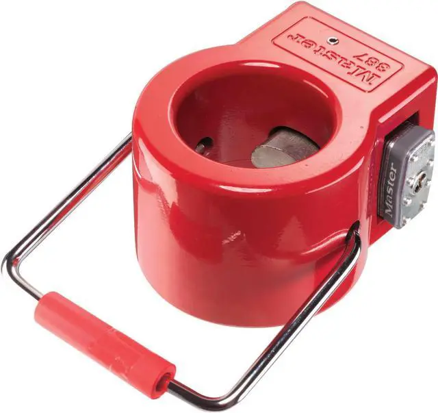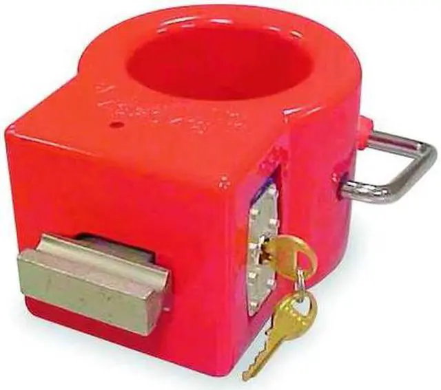 King Pin Lock, Lock Type King Pin Lock, For Use With King Pins, Hole Diameter 3in, Vehicle Class Not Applicable, Features Durable Flag Alerts Drivers that Lock is Attached, High Visibility Red Body, Renders Bolt Cutters Useless, Includes Integrated No 5 Lock, Finish Powder Coated. This item has been restricted from sale in the following state (s): []