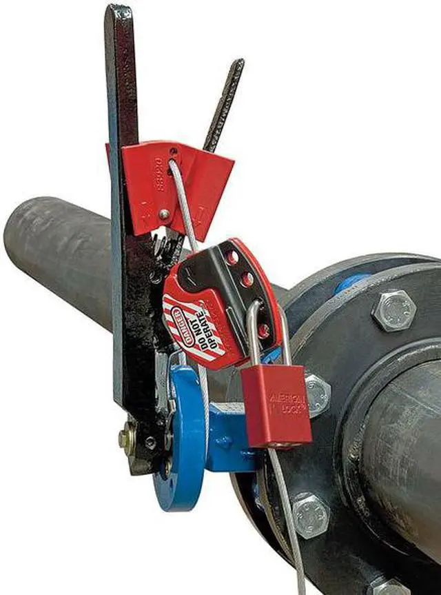 Butterfly Valve Lockout Kit, Butterfly Valve Lockout Type Butterfly Valve and Cable Lockout Kit, For Handle Type Lever Handle, For Locking Position Fully Closed, For Maximum Padlock Shackle Diameter 157/1000 in, Maximum Number of Padlocks 4, Includes Mfr. No. S806CBL3 Adjustable Lockout Cable, Legend Do Not Operate, Lockout Color Red, Lockout Material Thermoplastic. This item has been restricted from sale in the following state (s): []
