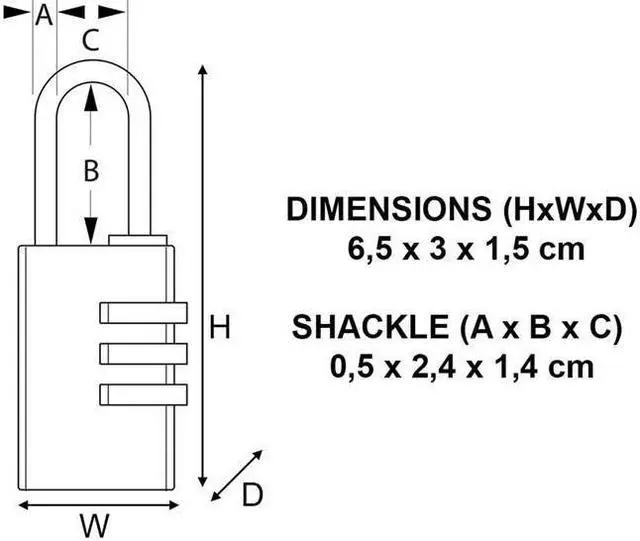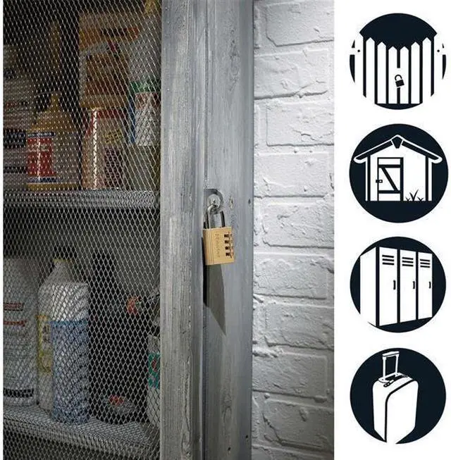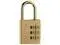 30mm aluminium padlock with brass finish - 23mm chrome plated steel shackle, 5mm diameter - 3-digit resettable combination