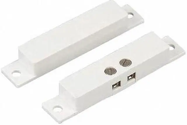 California Proposition 65: This product contains a chemical known to the State of California to cause birth defects or other reproductive harm. Magnetic Contact, Surface Mount, Electrical Configuration Normally Open, Loop Configuration Closed, Material ABS Plastic, Color White, Max Current (Amps) 0.5, Max Voltage 100 VDC/VAC, Gap Distance 29/32 Min, 1 Max In, Length 3/8 In, Height 9/32 In, Width 2 In, Depth 3/8 In, Operating Temp Range -15 to 160 F, Response Time 0.5 ms Max Sec, Mounting Surface, Adhesive and Two #8 Screw Holes, Standards, Includes Hardware, For Use With Windows and Doors. This item has been restricted from sale in the following state (s): []