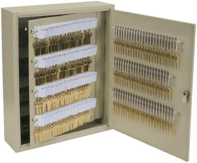 California Proposition 65: This product contains a chemical known to the State of California to cause birth defects or other reproductive harm. Key Control Cabinet, Cabinet with Cam Lock, Key Capacity (Units) 330, Height 20 in, Depth 5 in, Width 16 1/2 in, Steel, Built-In and Control Tags, Numbered White Snap-hook Key Tags, Slotted Steel Key Racks, Door Has Full Length Hinge and Comes with a Key Lock, Two Keys Included, Finish Beige Enamel, For Use With -. This item has been restricted from sale in the following state (s): []