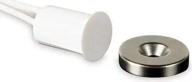California Proposition 65: This product contains a chemical known to the State of California to cause birth defects or other reproductive harm. Magnetic Contact, Recessed Mount, Electrical Configuration Normally Open, Loop Configuration Closed, Material ABS Plastic, Color White, Max Current (Amps) 0.5, Max Voltage 100 VDC/VAC, Gap Distance 43/64 Min, 47/64 Max In, Length 7/16 In, Height 3/8 In, Width 9/16 In, Depth 7/16 In, Lead Type #22 AWG, Lead Length 18 In, Operating Temp Range -15 to 160 F, Response Time 0.5 ms Max Sec, Mounting Recessed Mounted, Standards, Includes Hardware, For Use With Windows and Doors. This item has been restricted from sale in the following state (s): []