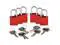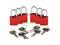 Lockout Padlock, Key Type Alike, Body Material Aluminum, Shackle Dia. 1/4 in, Shackle Height 1 in, Shackle Material Steel, Shackle Width 3/4 in, Body Width 1 1/4 in, Body Thickness 5/8 in, Includes (6) Padlocks, Standards OSHA 1910.147, Body Height 1 7/16 in, Body Color Red, Shackle Type Open, Number of Bumpers 0, Control Key Registration Required No, Package Quantity 6. This item has been restricted from sale in the following state (s): []