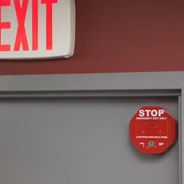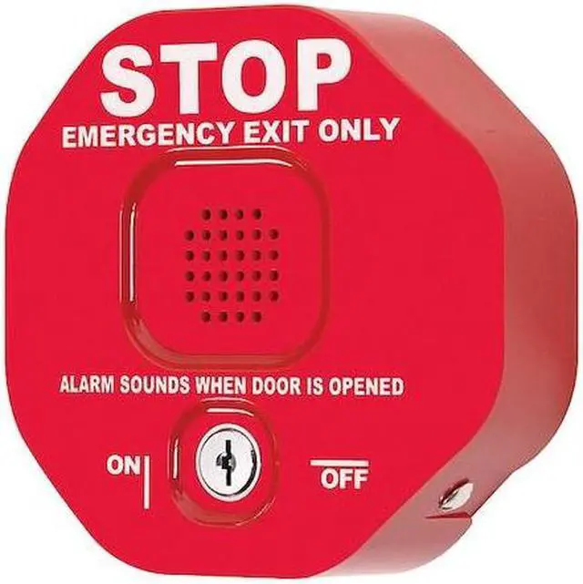 Exit Door Alarm, Finish Red, Cylinder Type Key Lock, Alarm Type Horn, Siren Style Horn, Activated By Unauthorized Egress, Alarm Duration 3 min, 30 sec, Continuously, Door Handing Non-Handed, Body Thickness 2 in, Body Dia. 5 in, Decibels 105 dB, Power Source Battery, Housing Material Polycarbonate, For Use With Exit and Entry Doors, Includes 9V Battery, Door Alarm, Mounting Hardware, Reed Switch Assembly, Remote Horn. This item has been restricted from sale in the following state (s): []