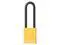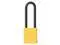 Lockout Padlock, Body Color Yellow, Body Height 1 3/4 in, Body Material Plastic-Covered Aluminum, Body Thickness 13/16 in, Body Width 1 9/16 in, Header None/No Header, Horizontal Shackle Clearance 3/4 in, Key Type Keyed Different, Non-Removable Key Yes, Resistance Properties Corrosion Resistant, Tamper Resistant, Shackle Diameter 5/16 in, Shackle Height 3 in, Shackle Material Steel, Shackle Type Open, Vertical Shackle Clearance 2 15/16 in, Width Across Shackle 3/4 in, Bumper Color Yellow. This item has been restricted from sale in the following state (s): []