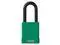 Lockout Padlock, Body Color Green, Body Height 1 3/4 in, Body Material Plastic-Covered Aluminum, Body Thickness 13/16 in, Body Width 1 1/2 in, Header None/No Header, Horizontal Shackle Clearance 3/4 in, Key Type Keyed Alike, Non-Removable Key Yes, Resistance Properties Corrosion Resistant, Tamper Resistant, Shackle Diameter 1/4 in, Shackle Height 1 1/2 in, Shackle Material Steel, Shackle Type Open, Vertical Shackle Clearance 1 1/2 in, Width Across Shackle 3/4 in, Bumper Color Green. This item has been restricted from sale in the following state (s): []
