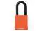 Lockout Padlock, Body Color Orange, Body Height 1 3/4 in, Body Material Plastic-Covered Aluminum, Body Thickness 13/16 in, Body Width 1 9/16 in, Header None/No Header, Horizontal Shackle Clearance 3/4 in, Key Type Keyed Different, Non-Removable Key Yes, Resistance Properties Corrosion Resistant, Tamper Resistant, Shackle Diameter 5/16 in, Shackle Height 1 1/2 in, Shackle Material Steel, Shackle Type Open, Vertical Shackle Clearance 1 1/2 in, Width Across Shackle 3/4 in, Bumper Color Orange. This item has been restricted from sale in the following state (s): []
