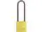 Lockout Padlock, Body Color Yellow, Body Height 1 1/2 in, Body Material Aluminum, Body Thickness 3/4 in, Body Width 1 9/16 in, Header None/No Header, Horizontal Shackle Clearance 3/4 in, Key Type Keyed Alike, Non-Removable Key Yes, Resistance Properties Corrosion Resistant, Heat Resistant, Shackle Diameter 1/4 in, Shackle Height 3 in, Shackle Material Hardened Steel, Shackle Type Extended, Vertical Shackle Clearance 2 15/16 in, Width Across Shackle 13/16 in, Body Material Coating Anodized. This item has been restricted from sale in the following state (s): []