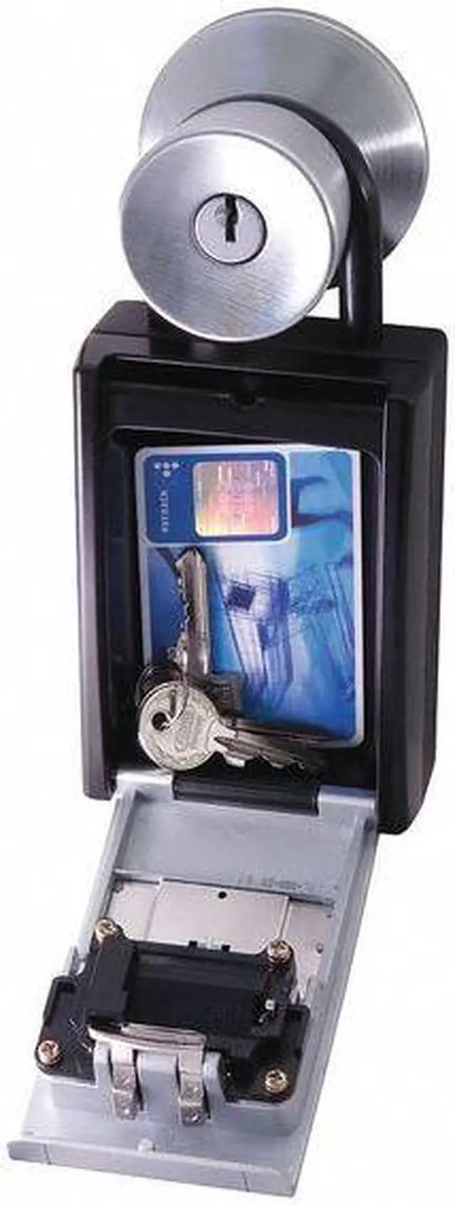 Lock Box, Padlock Mounting Type, Combination Locking Type, Key Capacity 20, Weather Resistant No, Height 7 1/6 in, Width 3 3/8 in, Depth 1 3/4 in, Metal, Black/Gray. This item has been restricted from sale in the following state (s): []