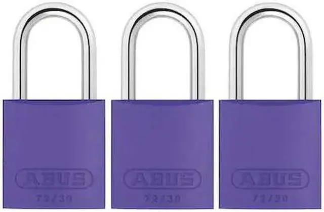 Lockout Padlock, Body Color Purple, Body Height 2 9/16 in, Body Material Aluminum, Body Thickness 5/8 in, Body Width 1 1/4 in, Header None/No Header, Horizontal Shackle Clearance 11/16 in, Key Type Keyed Alike, Non-Removable Key Yes, Resistance Properties Heat Resistant, Shackle Diameter 3/16 in, Shackle Height 1 in, Shackle Material Steel, Shackle Type Open, Vertical Shackle Clearance 1 1/16 in, Width Across Shackle 1 in, Body Material Coating Anodized, Body Shape Rectangular. This item has been restricted from sale in the following state (s): []