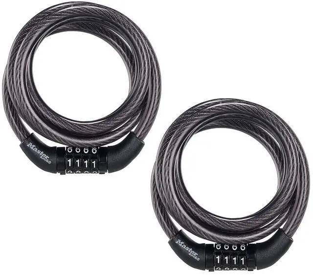 Master Lock Bike Lock Cable, Combination Bicycle Lock, Cable Lock for Outdoor Equipment, 2 Pack, 8143T