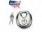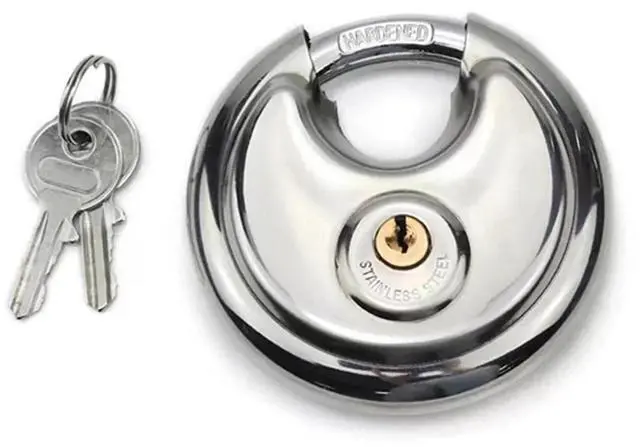 HIGH SECURITY: The shielded shackle of stainless steel discus lock will of cutter attempts on breaking it. Brass key cylinder and dual locking lever mechanism provides pick and pry resistance.