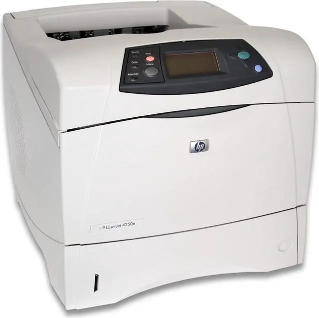 Featuring fast print speeds of up to 43 pages per minute and 1200 x 1200 dpi resolutions, this HP LaserJet 4250n delivers professional printing every time. It also includes 64 MB RAM, 100-sheet multipurpose tray, and is equipped with USB, Parallel and Ethernet ports. The LaserJet 4250n printer is also expandable to 512 MB RAM and is network enabled to help keep your office productive! Get yours today!HP LaserJet 4250n USB/Parallel/Ethernet Laser Printer Printer Cartridge Drivers CD Power cord