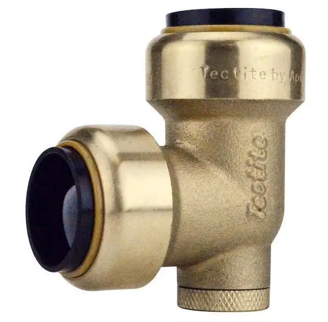 California Proposition 65: This product contains a chemical known to the State of California to cause birth defects or other reproductive harm. The Tectite by Apollo 3/4 in. Brass Push-To-Connect 90° Elbow with Drain/Vent is the fastest, cleanest and simplest way to integrate a vent or drain into copper, CPVC, PE-RT and PEX piping system without the use of tools, solder, open flame or glue. The innovative venting mechanism allows air or water to escape closed piping systems for system flushing, testing or maintenance. Simply insert the pipe to allow the high-strength stainless steel teeth to grip the pipe securely against the specially designed O-ring. Fitting removal and reuse is just as simple using a simple demount clip (sold separately). After assembly, fittings may be rotated for simpler installation in tight spaces. All Tectite by Apollo fittings are approved for use in both potable water and hydronic heating piping systems.