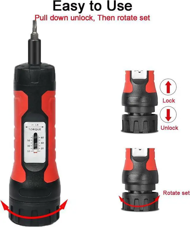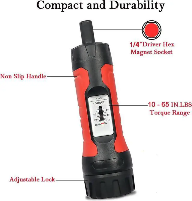 The torque screwdriver set includes essential accessories like a protective hard case, a 1/4" hex to 1/4" driver socket torque screwdriver, and a versatile set of bits, providing users with a convenient and comprehensive toolkit for all their torque-related needs.
