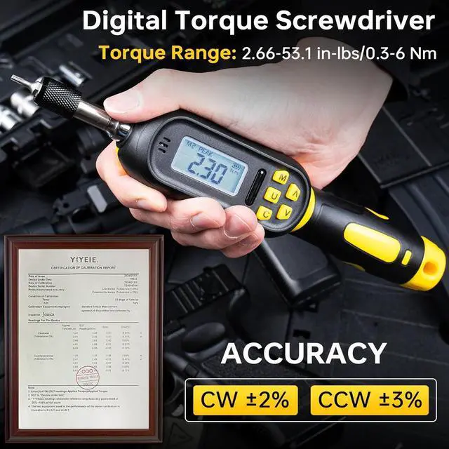32PCS digital torque screwdriver set includes 6 Point Sockets, Screwdriver Bits, Extension Bar, Storage Case and so on. Perfect for repairing bike, motorcycle, checking and calibrating torque wrenches, testing and debugging car engines