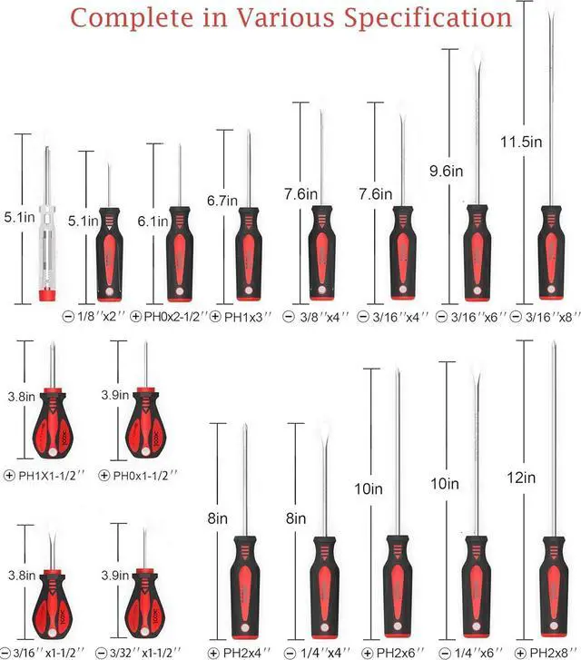 The handles of these screw drivers tool set are made from PP and TPR materials, offering a comfortable grip during extended use. Additionally, each screwdrivers is labeled with its corresponding size, facilitating easy identification and selection for specific tasks.