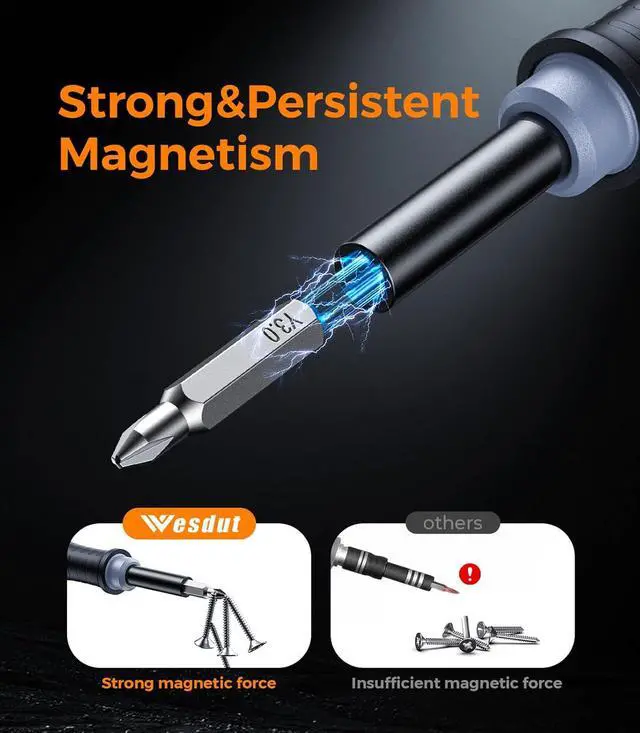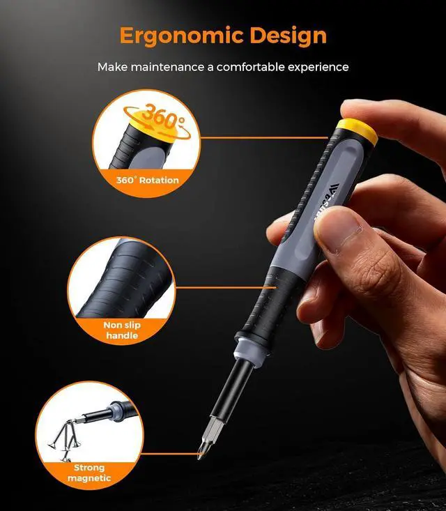 [Precision and Convenience] This screwdriver set adopts an advanced optical inspection system. The fit between the screwdriver bit and the shaft reaches an impressive 99% precision ensuring the connection will not loosen during use. It has won the trust of more than 25 000 DIY enthusiasts. [Reliable Magnetic Transmission] Strong magnetic force allows the bit to hold 46 computer screws. The set also includes a magnetizer/demagnetizer to control the bits magnetic strength so you can choose the right level during repair work and avoid problems such as screws sticking too tightly or not being picked up at all.
