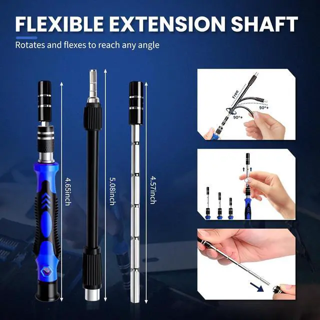 Screw Organization: The included magnetic mat ( 5.7 x 3.3 ) helps keep screws and small parts organized during repairs preventing confusion and loss of tiny screws. Flexible Extension Shaft for