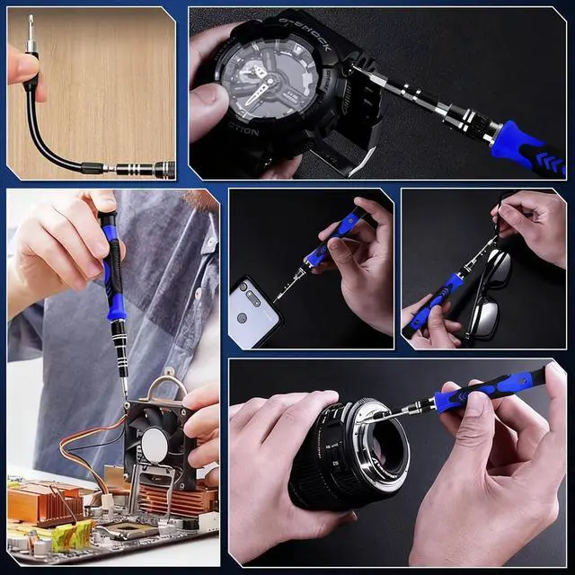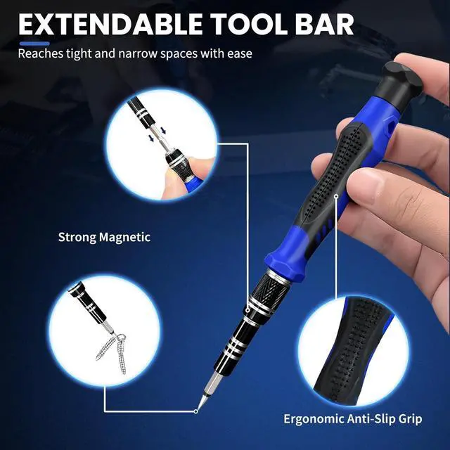Various Devices: This toolkit handles a wide variety of repairsfrom small electronics like glasses and game consoles to larger devices such as computers SSDs and HVAC systems. Ergonomic Handle for