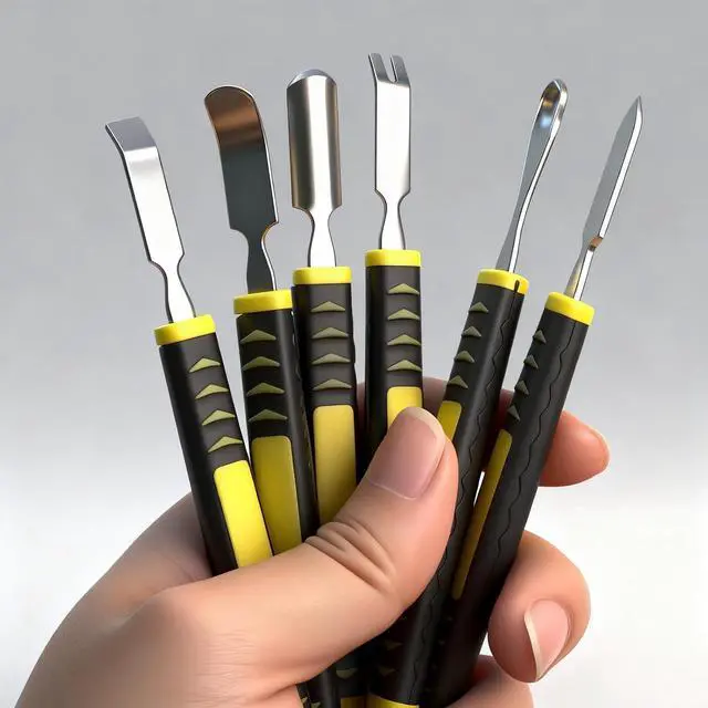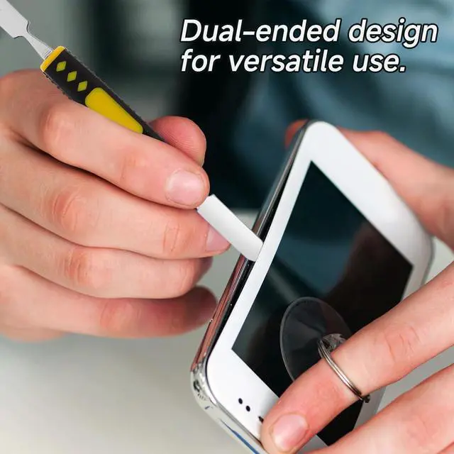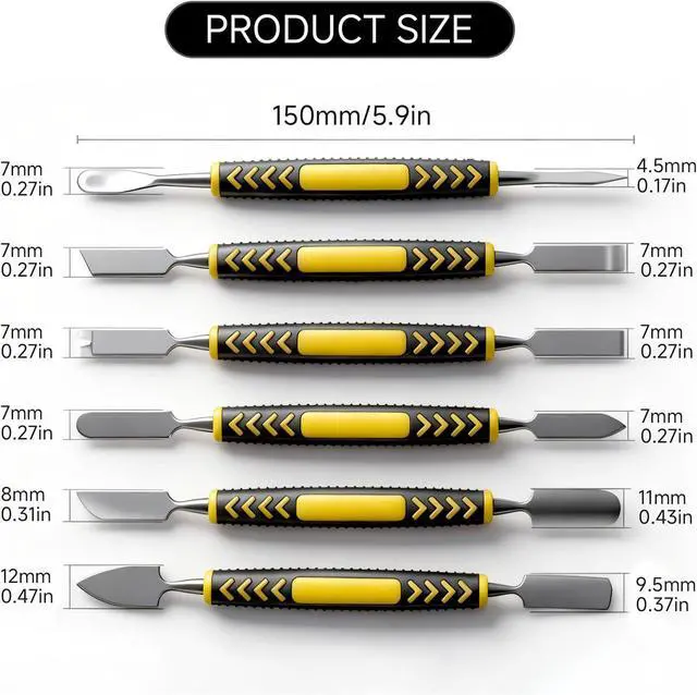 Made of stainless steel strong and light non-slip handle smoother to useThe total length is 5.9 inches the thickness is 0.31 inches and the width is 0.43 inchesEasy to open you only need a little force to remove your screen or coverThe pointed pick is easy to insert into small gaps and the flat pick is easy to pick up the shell and maintain the degree of opennessSuitable for disassembly of high-end digital products such as laptops tablets smart phones etc