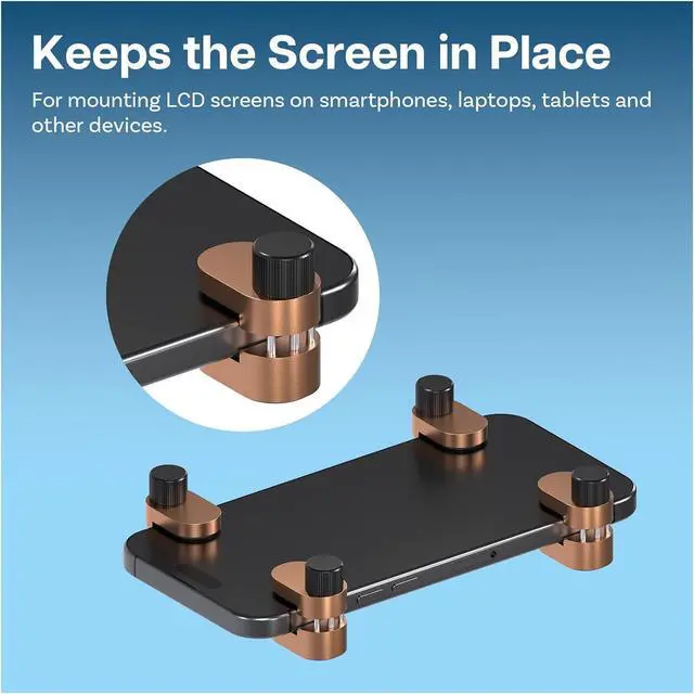 4Pcs/Set Adjustable Metal Clamp Mount Adhesive Clamp Mount LCD Screen Repair Tool for Smartphone Computer Laptop Tablet EbookMaterial - Made of aluminum with rubber protective pads to hold the newly replaced LCD screen in place. Does not curl or sink. Features for strength and adjustability provide an adjustable and secure clamp for your smartphone tablet laptop
