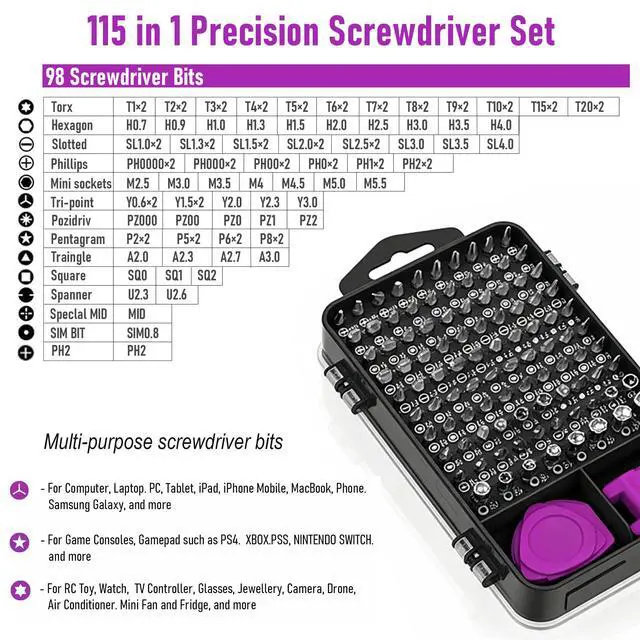 115 in 1 Precision Screwdriver Set with Torx Triwing BitsMagnetic Mini Screwdriver Kit for iPhone, MacBook, Computer, Laptop, PC, RC, PS4, Xbox, Eyeglasses, Watch