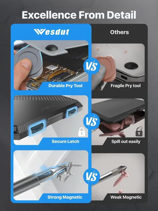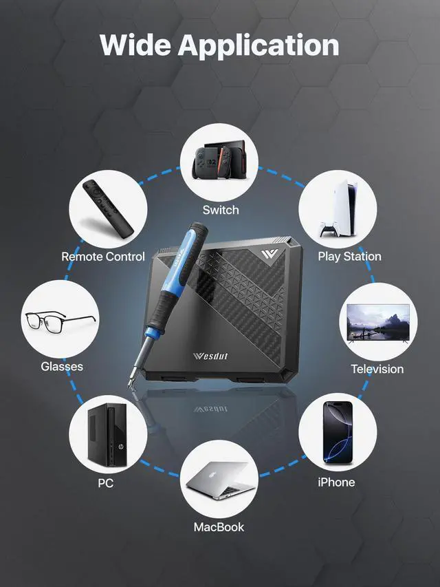 [Strong Magnetic Force] This 52-in-1 tool repair kit features a secure N55 magnetic connection. The powerful magnetic force transmitted to the bit is designed to securely hold multiple screws, helping to prevent loss and keep your workspace organized during repairs.