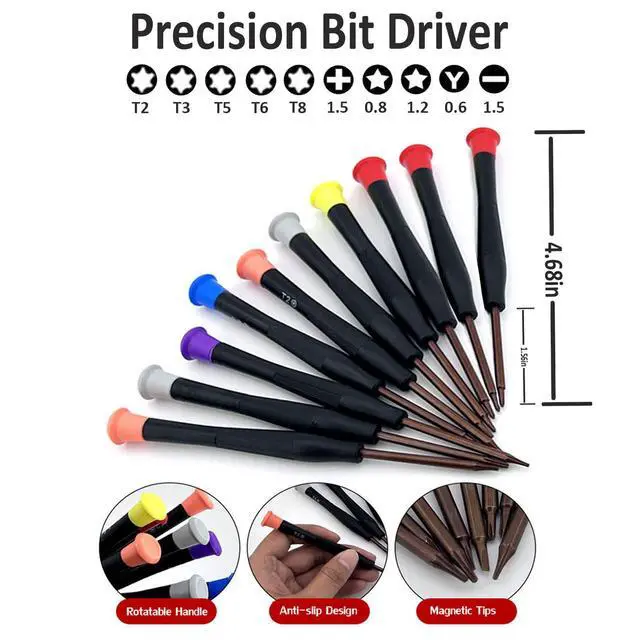 Anti-static and StrongThe tip of the screwdriver is sturdy and durable, not easy to peel off, ensuring a long product life. These drill bits undergo precise CNC machining to ensure their accuracy. Each digit is engraved with a part number and size for quick identification; anti-static tweezers and scrapers; hardened plastic pry bars and triangle paddles