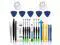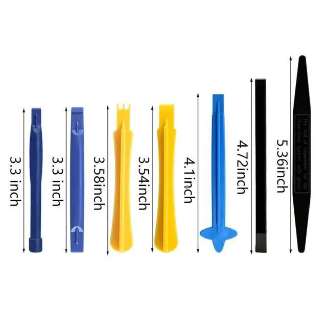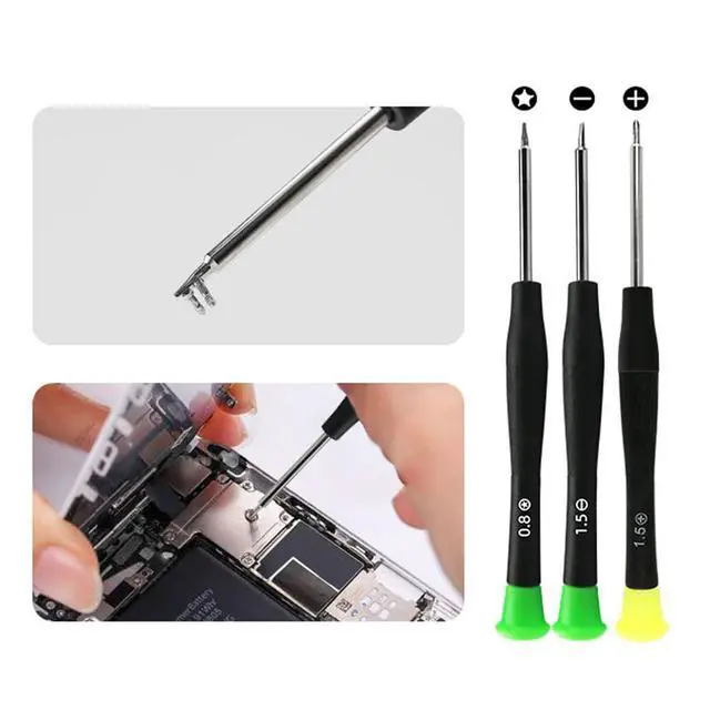 This screwdriver set in durable stainless steel tip and plastic handle with rubberized grip,hardened plastic pry bars and triangle paddles,anti-static tweezers and scrapers.
