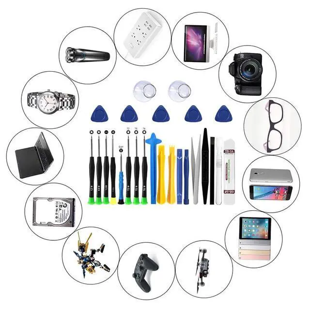 25 in 1 multifunctional professional repair tools suitable for assemble or disassemble all your ec devices. Like cellphones,computers, laptops, Android,Samsung,iPad, iPhone, HTC, LG ,battary ,camera lens ,Hard Drives,Razors and other electronic devices.