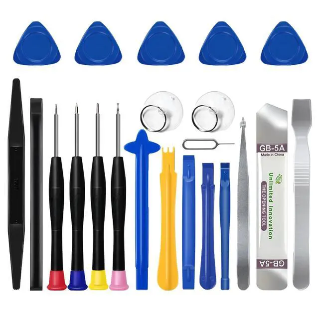 High Quality Bits & Magnetic HeadThe 22-in-1 piece screwdriver tool set is made of durable stainless steel tip and plastic handle grip, anti-static tweezers and scrapers, hardened plastic pry bars and triangle paddles. Screwdriver tips with strong magnetic can easily absorb screws and wont slide off even you shake it slightly, which help you to handle tiny screws. The phone repair tweezers has anti-static coating helps protect electronic components from static damage.