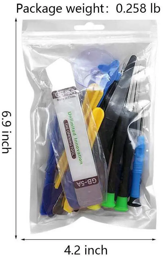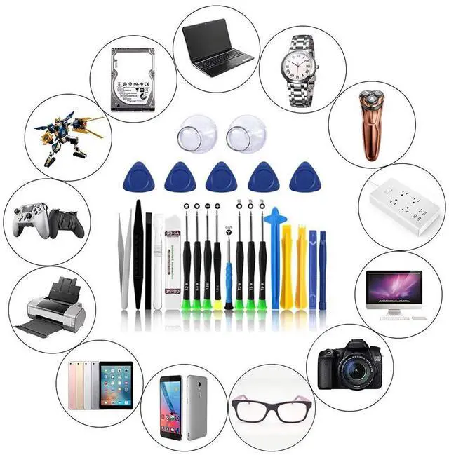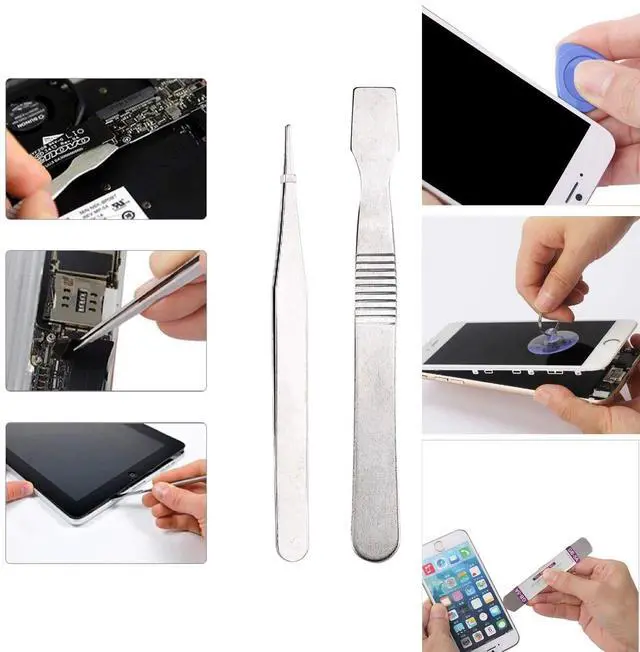What You Will Get: Come with absolutely everything you need.- 25pcs phone repair tool kit .Including 8* precision screwdriver, 14* Opening Pry Tool, 1* tweezers, 2* LCD Screen Suction Cup in different size meet all your operating demand .