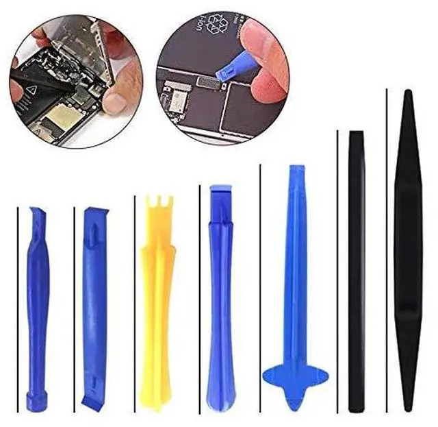 Super Strong Material: This screwdriver set in durable stainless steel tip and plastic handle with rubberized grip; anti-static tweezers and scrapers; hardened plastic pry bars and triangle paddles