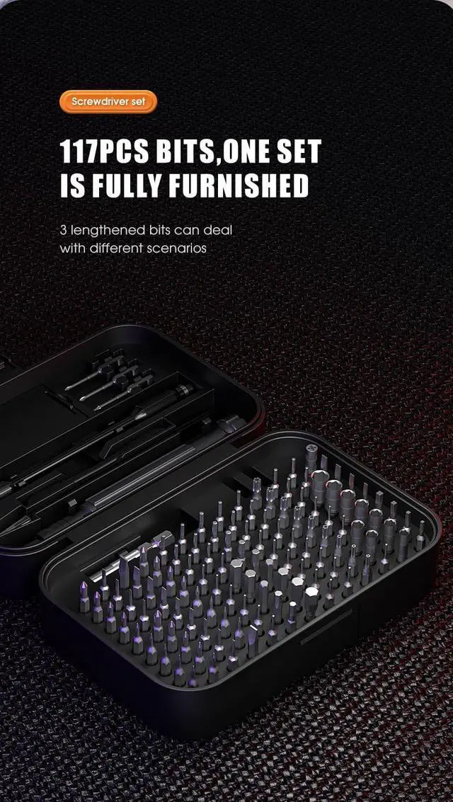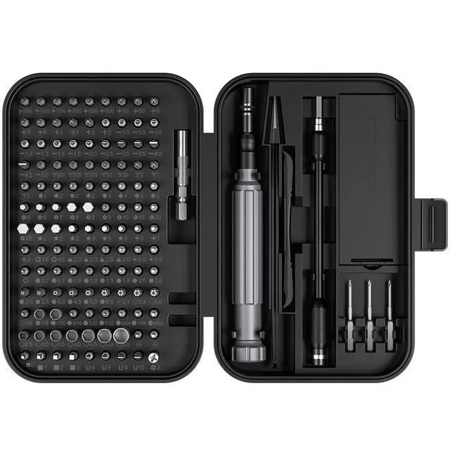 Unlock your inner handyman with this 150-piece precision screwdriver set. Whether you're repairing electronics, assembling furniture, or tinkering with hobbies, this comprehensive kit has the right tool for every job. Crafted with durable materials, these screwdrivers offer a secure grip and precise fit for intricate tasks. The set includes a wide range of flat-head, Phillips, Torx, and specialty bits to tackle any screw size or shape. Conveniently organized in a sturdy case, you'll always have the perfect screwdriver at your fingertips. Upgrade your toolkit and conquer any repair or assembly project with confidence. Suitable for professionals and DIY enthusiasts alike.