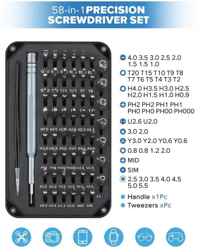 58 Precision Screwdriver Set, Super Durable Tiny Tool Kit for Watch, Laptop, Eyeglasses & Camera for Electronics Repair