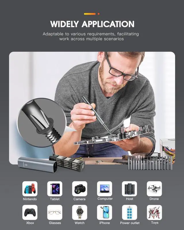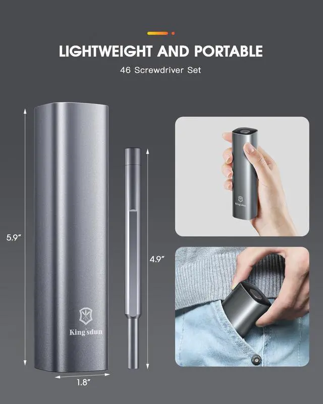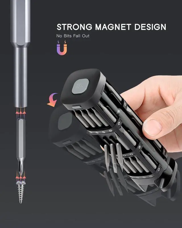 - [PORTABLE & EASY TO CARRY] The bit, screwdriver slot, and storage box core all boast strong magnetism, ensuring a secure hold for the bits. The portable micro screwdriver set is impressively compact and stylish, giving off a high-end and refined vibe when you hold it. It effortlessly fits into your pocket, tool bag, or backpack.