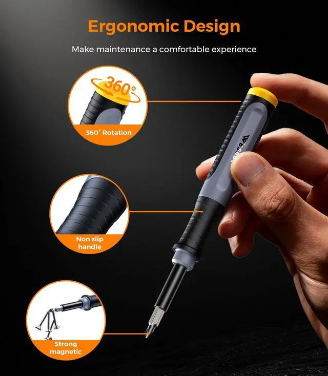 [Precision and Convenience] This screwdriver set adopts an advanced optical inspection system. The fit between the screwdriver bit and the shaft reaches an impressive 99% precision, ensuring the connection will not loosen during use. It has won the trust of more than 25,000 DIY enthusiasts.