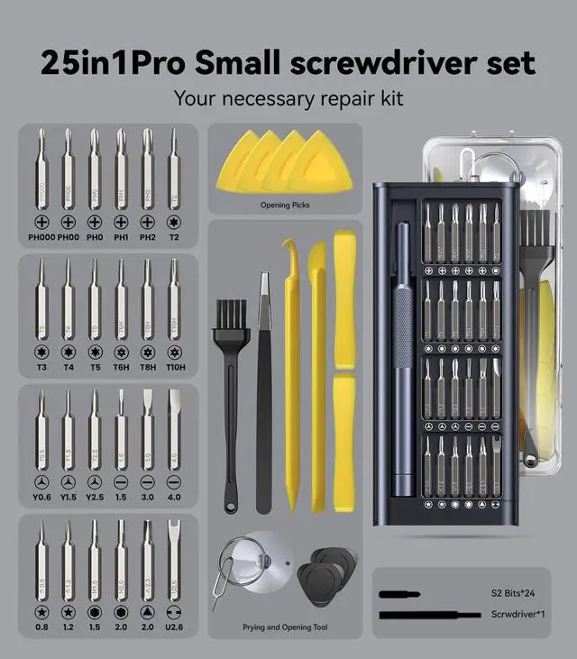 ![Alt view image 7 of 7 - AXTH 25in1 Pro Small Precision Screwdriver Set, [S2 Steel] Magnetic Mini Tool Kit for DIY Enthusiasts, Digital Repair Technicians, Electronics Hobbyists, Phone, Computer, Watch, Laptop, Macbook](https://c1.neweggimages.com/productimage/nb640/C5M0D2603130Y9SGPE6.jpg)