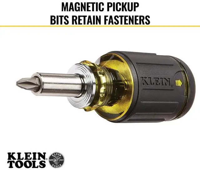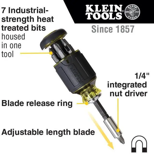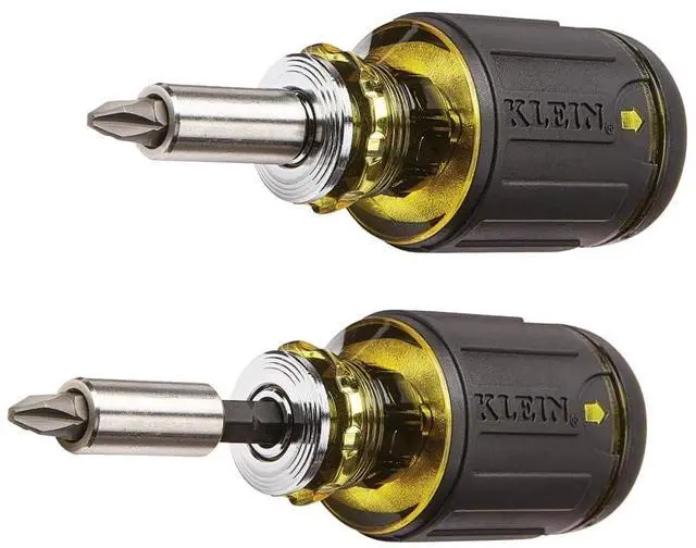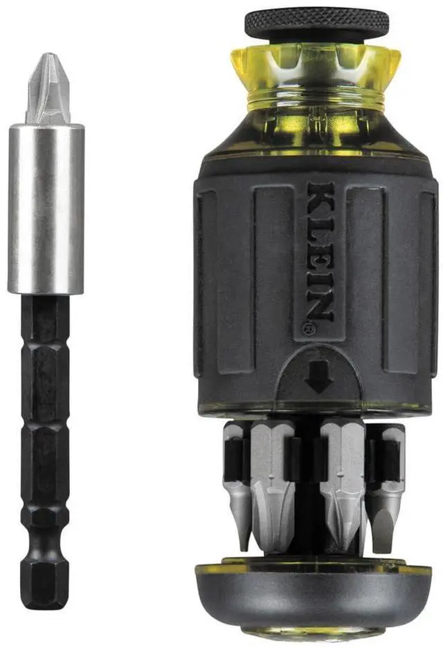 Klein Tools' Adjustable Length Screwdrivers function both as multi-bit screwdrivers and impact driver attachments. With these screwdrivers, there is no need to run back to your tool bag. Industrial-strength bits are conveniently housed in the handle.